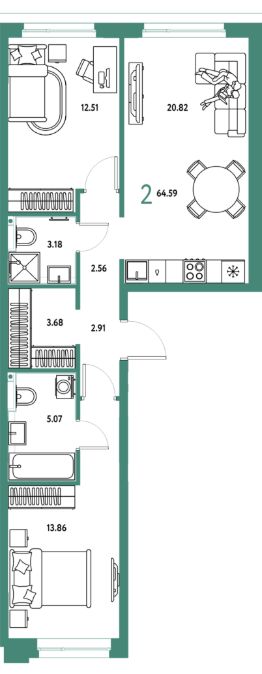 Продаётся 2-комнатная квартира в строящемся доме (Квартал Инженеров (ГП-7)), срок сдачи: IV-кв. 2027, общей площадью 64.59 кв.м., на 6 этаже. Новый жилой комплекс "Сердце Сибири" расположился в центре Тюмени в границах улиц 50 лет Октября-Пермякова-Харьковская.