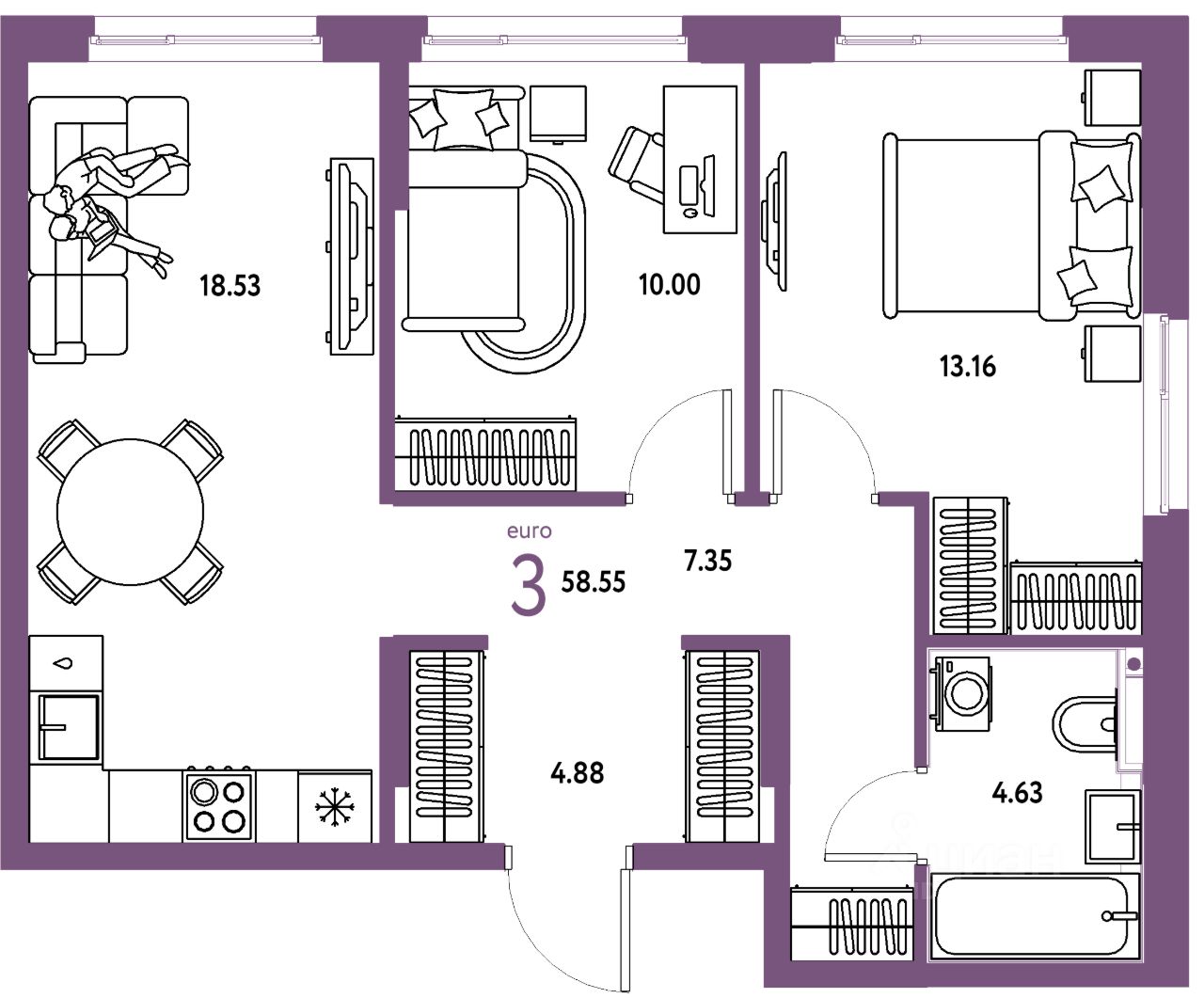 Продаётся 3-комнатная квартира в строящемся доме (Квартал Инженеров (ГП-7)), срок сдачи: IV-кв. 2027, общей площадью 58.55 кв.м., на 12 этаже. Новый жилой комплекс "Сердце Сибири" расположился в центре Тюмени в границах улиц 50 лет Октября-Пермякова-Харьковская.