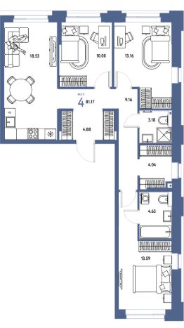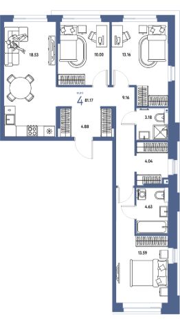 Продаётся 4-комнатная квартира в строящемся доме (Квартал Инженеров (ГП-7)), срок сдачи: IV-кв. 2027, общей площадью 81.17 кв.м., на 11 этаже. Новый жилой комплекс "Сердце Сибири" расположился в центре Тюмени в границах улиц 50 лет Октября-Пермякова-Харьковская.