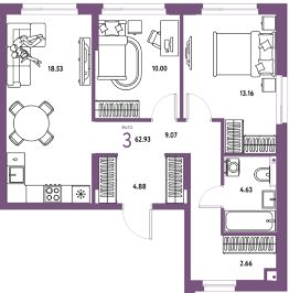Продаётся 3-комнатная квартира в строящемся доме (Квартал Инженеров (ГП-7)), срок сдачи: IV-кв. 2027, общей площадью 62.93 кв.м., на 14 этаже. Новый жилой комплекс "Сердце Сибири" расположился в центре Тюмени в границах улиц 50 лет Октября-Пермякова-Харьковская.