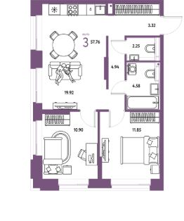 Продаётся 3-комнатная квартира в строящемся доме (Квартал Инженеров (ГП-7)), срок сдачи: IV-кв. 2027, общей площадью 57.76 кв.м., на 5 этаже. Новый жилой комплекс "Сердце Сибири" расположился в центре Тюмени в границах улиц 50 лет Октября-Пермякова-Харьковская.