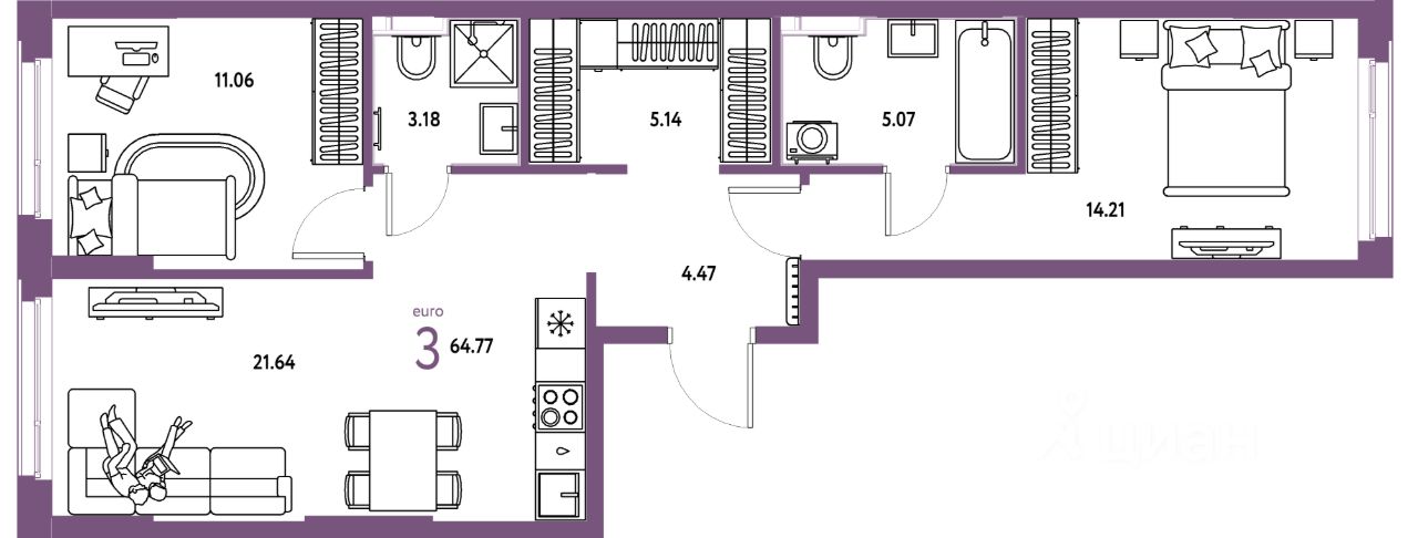 Продаётся 3-комнатная квартира в строящемся доме (Квартал Инженеров (ГП-7)), срок сдачи: IV-кв. 2027, общей площадью 64.77 кв.м., на 7 этаже. Новый жилой комплекс "Сердце Сибири" расположился в центре Тюмени в границах улиц 50 лет Октября-Пермякова-Харьковская.