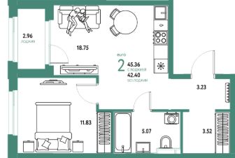 Продаётся 2-комнатная квартира в строящемся доме (Квартал Инженеров (ГП-7)), срок сдачи: IV-кв. 2027, общей площадью 45.36 кв.м., на 15 этаже. Новый жилой комплекс "Сердце Сибири" расположился в центре Тюмени в границах улиц 50 лет Октября-Пермякова-Харьковская.
