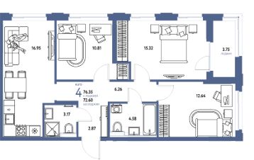 Продаётся 4-комнатная квартира в строящемся доме (Квартал Инженеров (ГП-7)), срок сдачи: IV-кв. 2027, общей площадью 76.35 кв.м., на 9 этаже. Новый жилой комплекс "Сердце Сибири" расположился в центре Тюмени в границах улиц 50 лет Октября-Пермякова-Харьковская.