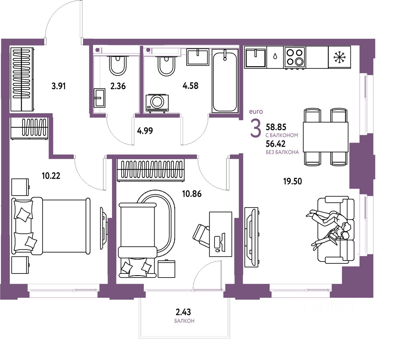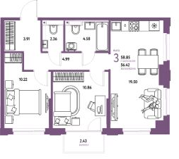 Продаётся 3-комнатная квартира в строящемся доме (Квартал Инженеров (ГП-7)), срок сдачи: IV-кв. 2027, общей площадью 58.85 кв.м., на 11 этаже. Новый жилой комплекс "Сердце Сибири" расположился в центре Тюмени в границах улиц 50 лет Октября-Пермякова-Харьковская.
