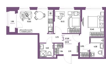 Продаётся 3-комнатная квартира в строящемся доме (Квартал Инженеров (ГП-7)), срок сдачи: IV-кв. 2027, общей площадью 57.09 кв.м., на 13 этаже. Новый жилой комплекс "Сердце Сибири" расположился в центре Тюмени в границах улиц 50 лет Октября-Пермякова-Харьковская.