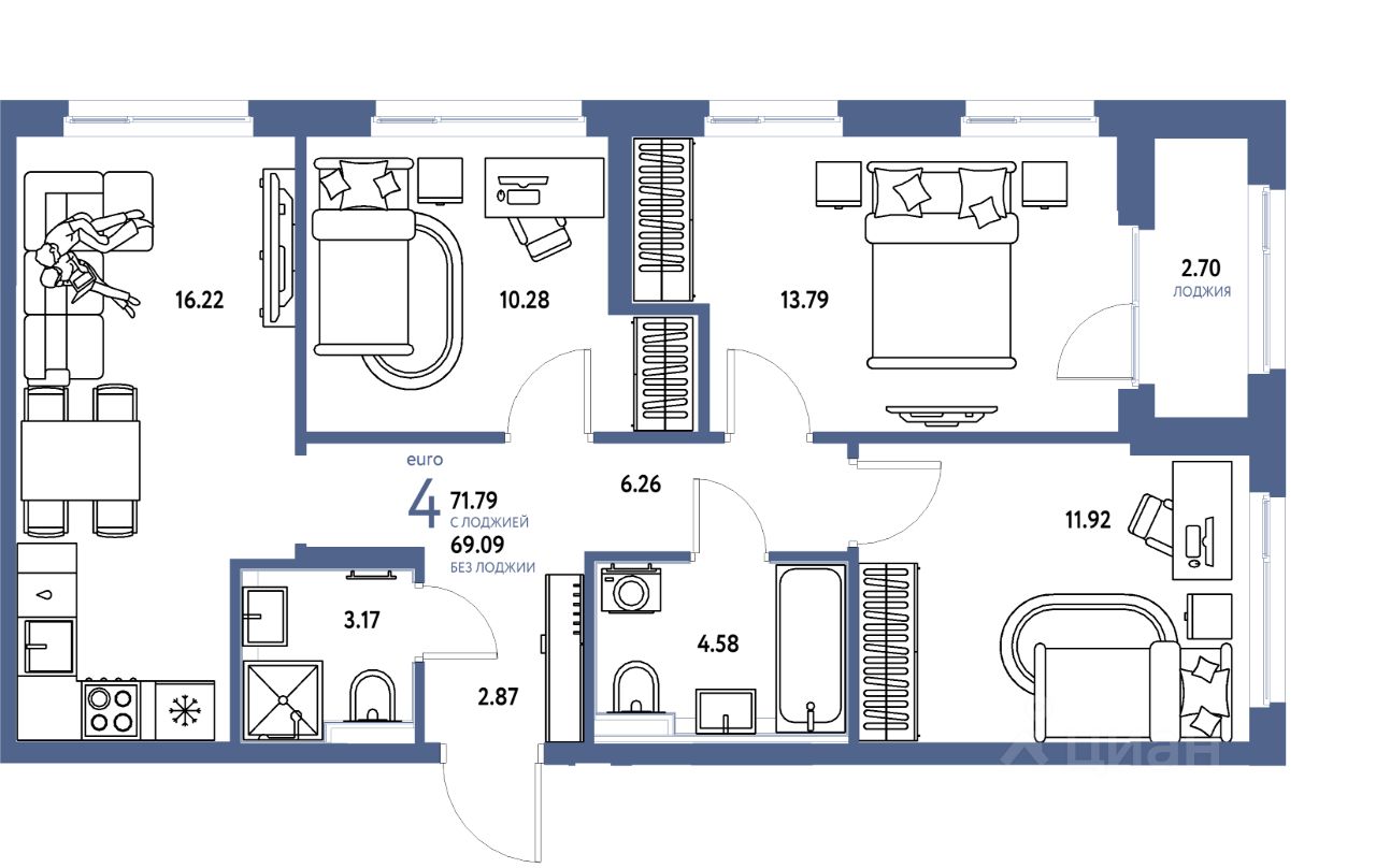 Продаётся 4-комнатная квартира в строящемся доме (Квартал Инженеров (ГП-7)), срок сдачи: IV-кв. 2027, общей площадью 71.79 кв.м., на 17 этаже. Новый жилой комплекс "Сердце Сибири" расположился в центре Тюмени в границах улиц 50 лет Октября-Пермякова-Харьковская.