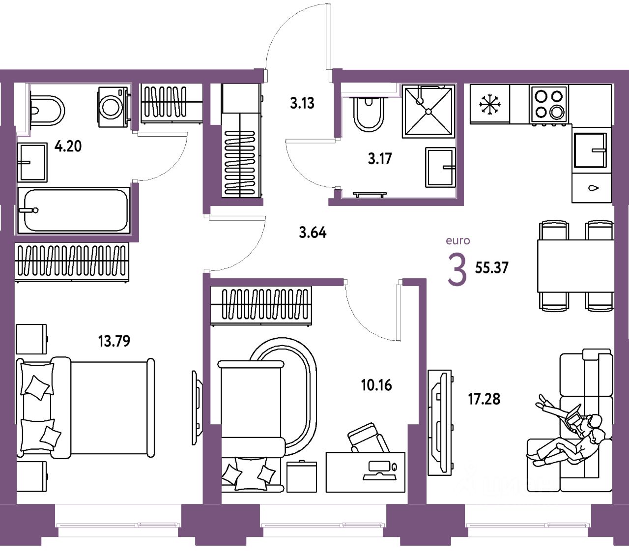 Продаётся 3-комнатная квартира в строящемся доме (Квартал Инженеров (ГП-7)), срок сдачи: IV-кв. 2027, общей площадью 55.37 кв.м., на 2 этаже. Новый жилой комплекс "Сердце Сибири" расположился в центре Тюмени в границах улиц 50 лет Октября-Пермякова-Харьковская.