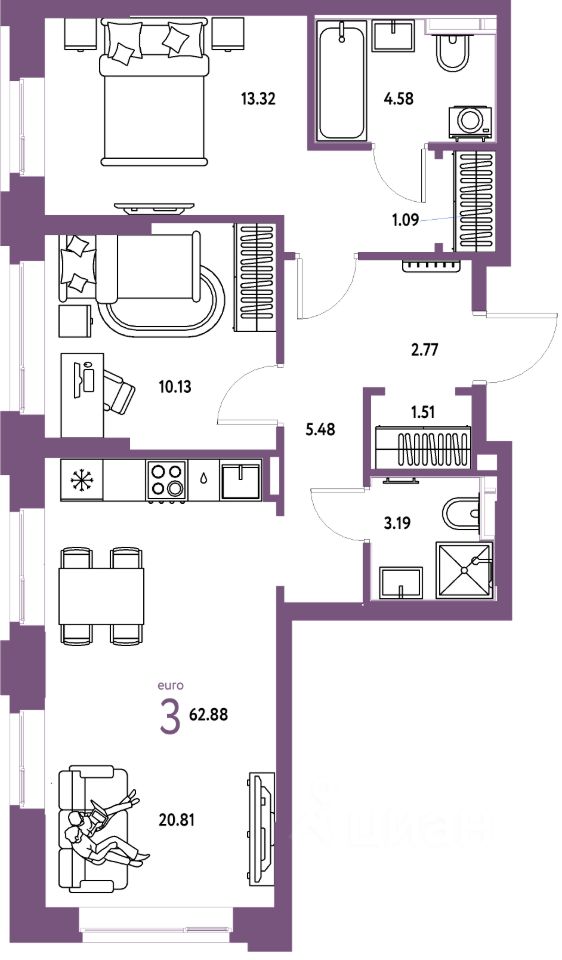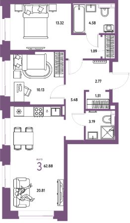 Продаётся 3-комнатная квартира в строящемся доме (Квартал Инженеров (ГП-7)), срок сдачи: IV-кв. 2027, общей площадью 62.88 кв.м., на 4 этаже. Новый жилой комплекс "Сердце Сибири" расположился в центре Тюмени в границах улиц 50 лет Октября-Пермякова-Харьковская.