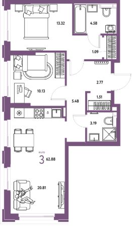 Продаётся 3-комнатная квартира в строящемся доме (Квартал Инженеров (ГП-7)), срок сдачи: IV-кв. 2027, общей площадью 62.88 кв.м., на 6 этаже. Новый жилой комплекс "Сердце Сибири" расположился в центре Тюмени в границах улиц 50 лет Октября-Пермякова-Харьковская.