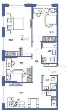 Продаётся 4-комнатная квартира в строящемся доме (Квартал Инженеров (ГП-7)), срок сдачи: IV-кв. 2027, общей площадью 77.24 кв.м., на 9 этаже. Новый жилой комплекс "Сердце Сибири" расположился в центре Тюмени в границах улиц 50 лет Октября-Пермякова-Харьковская.