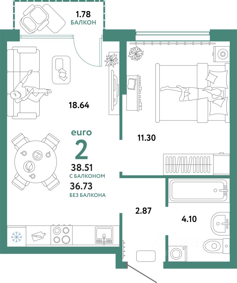 Продаётся 2-комнатная квартира в строящемся доме (Квартал Экологов (ГП-6)), срок сдачи: II-кв. 2026, общей площадью 38.51 кв.м., на 4 этаже. Новый жилой комплекс "Сердце Сибири" расположился в центре Тюмени в границах улиц 50 лет Октября-Пермякова-Харьковская.