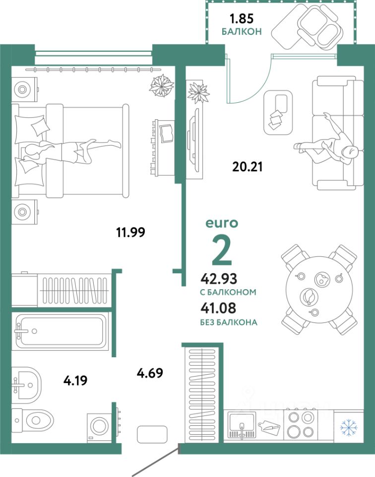 Продаётся 2-комнатная квартира в строящемся доме (Квартал Экологов (ГП-6)), срок сдачи: II-кв. 2026, общей площадью 42.93 кв.м., на 9 этаже. Новый жилой комплекс "Сердце Сибири" расположился в центре Тюмени в границах улиц 50 лет Октября-Пермякова-Харьковская.