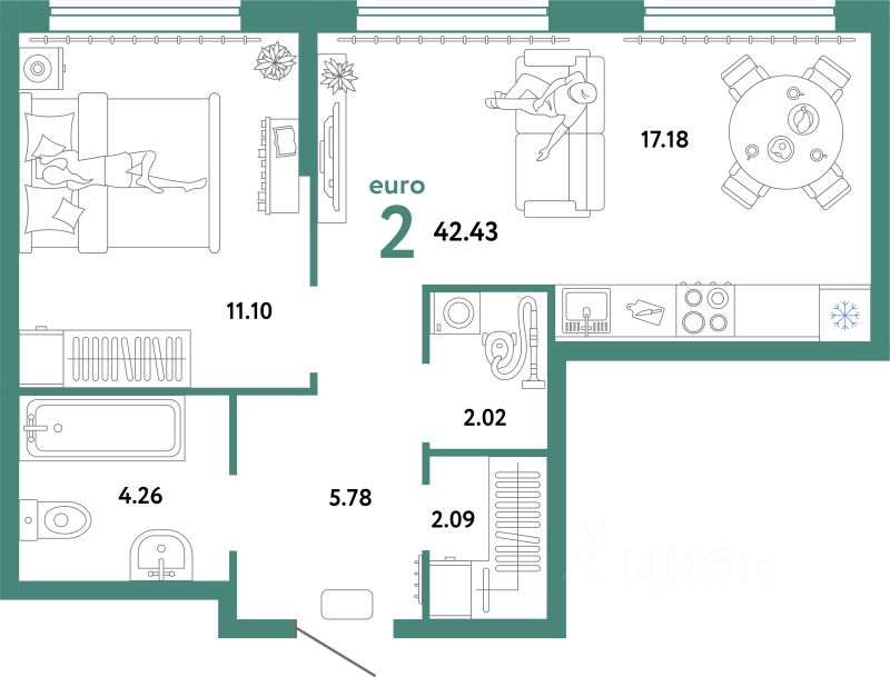 Продаётся 2-комнатная квартира в строящемся доме (Квартал Экологов (ГП-6)), срок сдачи: II-кв. 2026, общей площадью 42.43 кв.м., на 13 этаже. Новый жилой комплекс "Сердце Сибири" расположился в центре Тюмени в границах улиц 50 лет Октября-Пермякова-Харьковская.