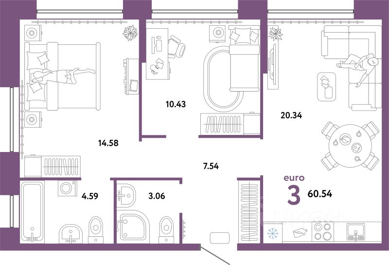 Продаётся 3-комнатная квартира в строящемся доме (Квартал Экологов (ГП-6)), срок сдачи: II-кв. 2026, общей площадью 60.54 кв.м., на 11 этаже. Новый жилой комплекс "Сердце Сибири" расположился в центре Тюмени в границах улиц 50 лет Октября-Пермякова-Харьковская.