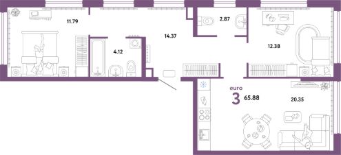 Продаётся 3-комнатная квартира в строящемся доме (Квартал Экологов (ГП-6)), срок сдачи: II-кв. 2026, общей площадью 65.88 кв.м., на 13 этаже. Новый жилой комплекс "Сердце Сибири" расположился в центре Тюмени в границах улиц 50 лет Октября-Пермякова-Харьковская.