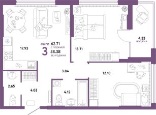 Продаётся 3-комнатная квартира в строящемся доме (Квартал Экологов (ГП-6)), срок сдачи: II-кв. 2026, общей площадью 62.71 кв.м., на 6 этаже. Новый жилой комплекс "Сердце Сибири" расположился в центре Тюмени в границах улиц 50 лет Октября-Пермякова-Харьковская.