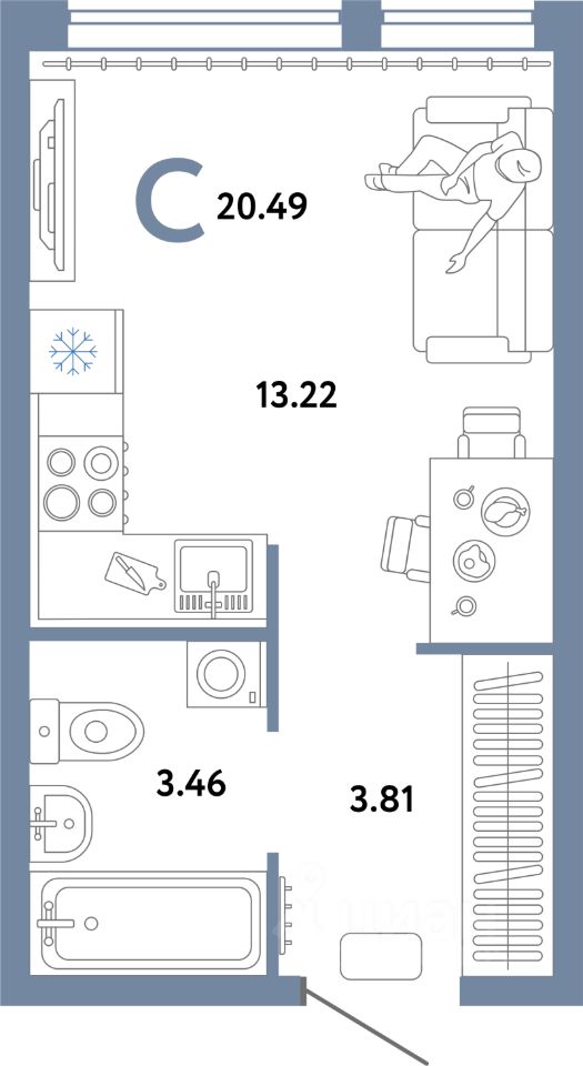 Продаётся студия в строящемся доме (Квартал Экологов (ГП-6)), срок сдачи: II-кв. 2026, общей площадью 20.49 кв.м., на 15 этаже. Новый жилой комплекс "Сердце Сибири" расположился в центре Тюмени в границах улиц 50 лет Октября-Пермякова-Харьковская.