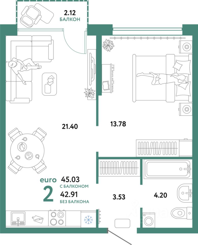 Продаётся 2-комнатная квартира в строящемся доме (Квартал Экологов (ГП-6)), срок сдачи: II-кв. 2026, общей площадью 45.03 кв.м., на 9 этаже. Новый жилой комплекс "Сердце Сибири" расположился в центре Тюмени в границах улиц 50 лет Октября-Пермякова-Харьковская.