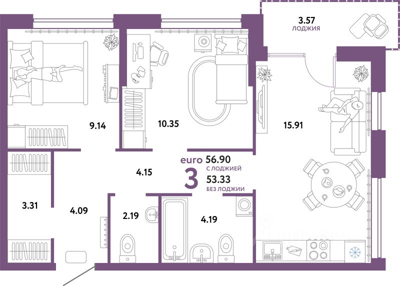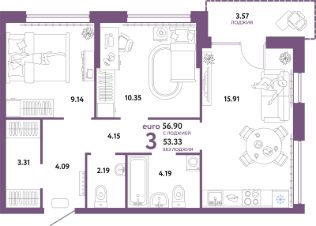 Продаётся 3-комнатная квартира в строящемся доме (Квартал Экологов (ГП-6)), срок сдачи: II-кв. 2026, общей площадью 56.9 кв.м., на 13 этаже. Новый жилой комплекс "Сердце Сибири" расположился в центре Тюмени в границах улиц 50 лет Октября-Пермякова-Харьковская.