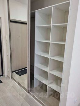 Встроенный шкаф-купе, мебель делалась на заказ. Увеличенная зона шкафа для большей вместимости.