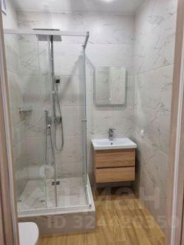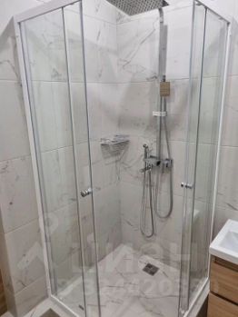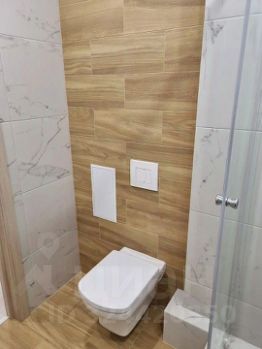 В санузле керамогранит, встроенный душевой поддон, подвесной унитаз, подвесная раковина, предусмотрен вывод под стиральную машину. Дверной проем в санузел смещен чтоб при входе не спотыкаться об унитаз.