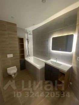 Просторая ванная комната 6 кв.м. с керамогранитом, современной сантехникой (ванна, пена, тумба с раковиной, зеркало, сушка). Осталось только установить стиральную машину!