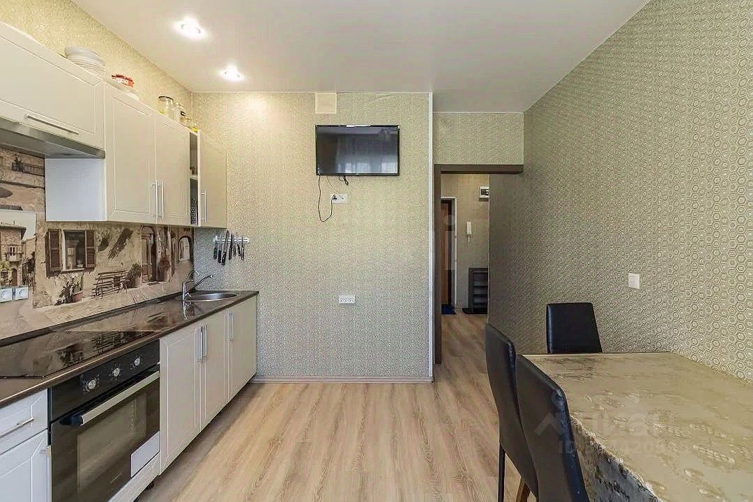 Мебель и техника: Частично остаются кухонный гарнитур, плита, холодильник (на выбор покупателя), микроволновая печь и встроенный шкаф-купе в коридоре. Комната свободна для вашей мебели.