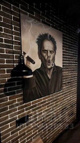 Мебель выполнена на заказ по дизайн проекту. Картины нарисованы художником, как и входная дверь, которая вручную покрашена под текстуру дерева.