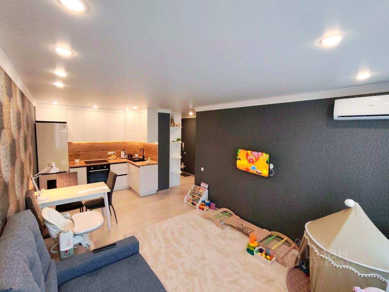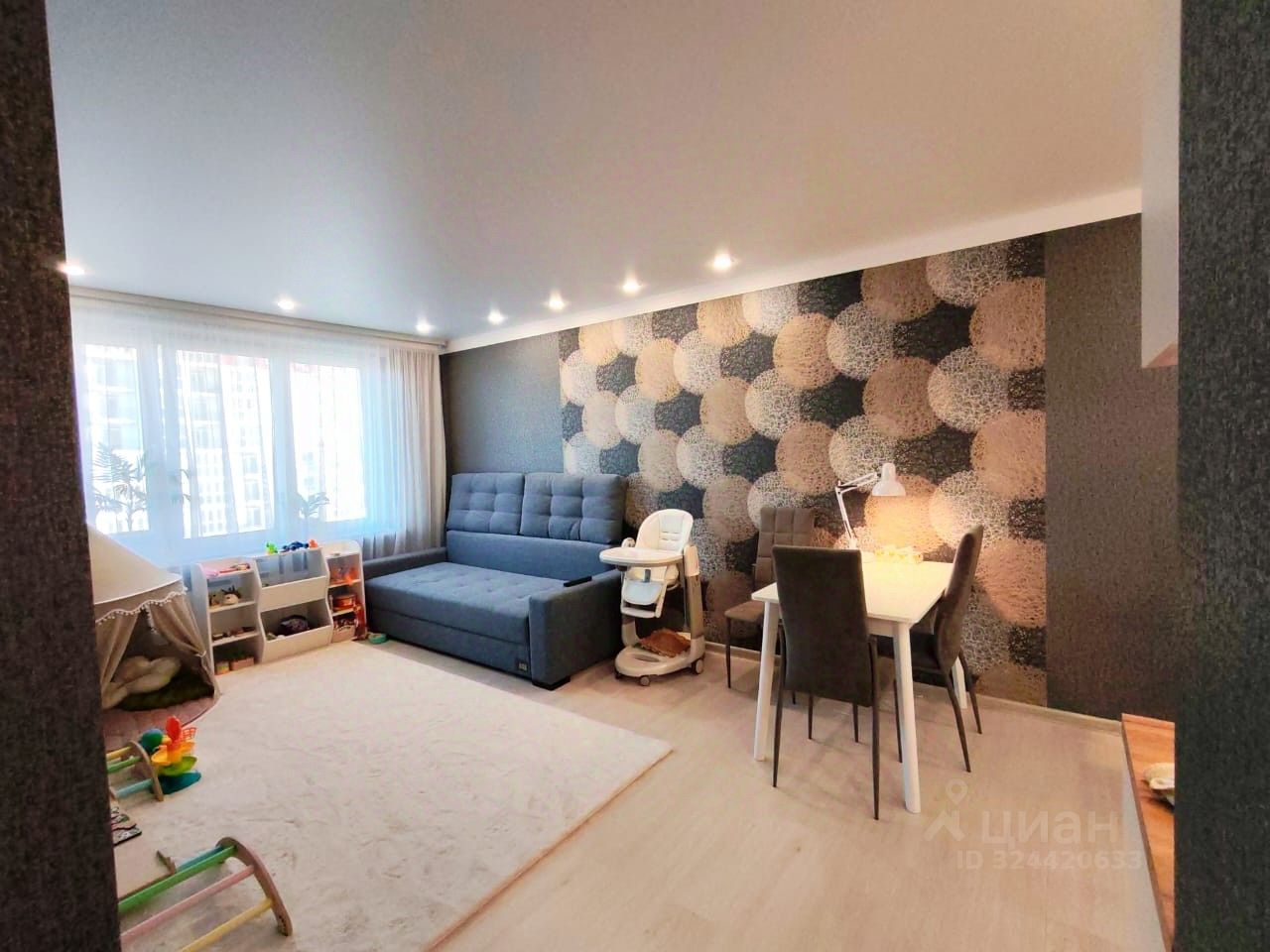 Продается уютная и современная квартира с качественным ремонтом в престижном районе "Док". Общая площадь жилья составляет 41,5 м², из которых просторная кухня-гостиная занимает 21,5 м² — идеальное пространство для семейных ужинов и встреч с друзьями. Квартира расположена на комфортном 4 этаже 18-этажного дома, а высота потолков 2,65 м придает помещению дополнительную воздушность и простор. Внутри квартиры выполнен стильный и продуманный ремонт: на полу уложен качественный ламинат, потолок натяжной с современными встроенными светильниками, создающими мягкое и равномерное освещение. Стены оформлены темными обоями, которые легко впишутся в любой интерьер. В квартире уже есть все — можно сразу заезжать и жить без лишних хлопот. Все розетки, выключатели и кабели проведены и подключены, что обеспечивает удобство и комфорт в повседневной жизни. Ванная комната полностью оборудована и отделана плиткой: установлены ванна, унитаз и раковина, что делает квартиру полностью готовой к проживанию без дополнительных вложений. Особым преимуществом являются окна с видом на живописную реку Тура — это не только красивый пейзаж, но и возможность наслаждаться свежим воздухом и спокойной атмосферой. Эта квартира — отличный выбор как для собственного проживания, так и для выгодных инвестиций. Не упустите шанс стать владельцем комфортного и стильного жилья в одном из лучших районов города!