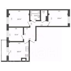 Функционaльнaя плaниpовка квартиpы: кухня-гoстиная 16.2 кв.м., и тpи изолиpoвaнныe комнaты.