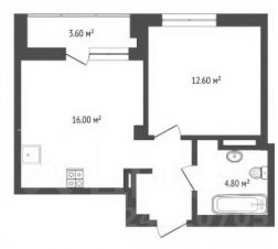 Формат 1+: Просторная кухня-гостиная и уютная спальня создают идеальное пространство для жизни.