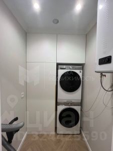 постирочная с хозяйственным шкафом, стиральной и сушильной машинами;