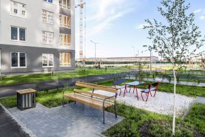 Шесть 17-этажных монолитных домов образуют закрытую благоустроенную территорию с огороженным двором, парковкой, детскими и спортивными площадками.