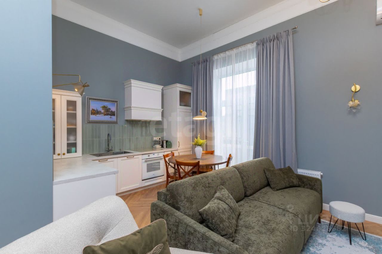 Кухня-гостиная 17 м2. Высокие потолки. В квартире спроектированы окна с большой площадью остекления и низкими подоконниками. Качественный ремонт в пастельных тонах. Один взрослый собственник.