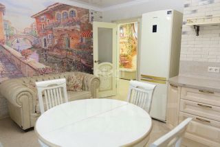 На кухне установлен кухонный гарнитур Lorena с Blum фурнитурой и встроенной бытовой техникой (микроволновая печь, духовая печь, посудомоечная машина, варочная панель) фирм Samsung и Bosh (остается при продаже), фильтр питьевой воды, датчики протечки воды, кондиционер.
