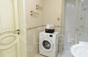 В санузле установлен бойлер (остается при продаже), датчики протечки воды, душевая кабина, стиральная машина Samsung.