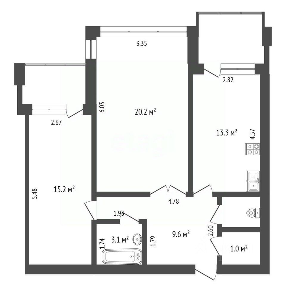 Квартира в самом центре Тюмени — 64,2 кв.м, формат 2+