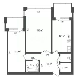 - Две комнаты: 20,2 кв.м и 15,2 кв.м с выходом на вторую утеплённую лоджию 3,4 кв.м также с теплым полом. Лоджия при спальне это полноценный рабочий кабинет с дополнительными местами для хранения.