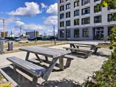 Благоустроенная территория: зелёные зоны, дорожки, освещение и видеонаблюдение.