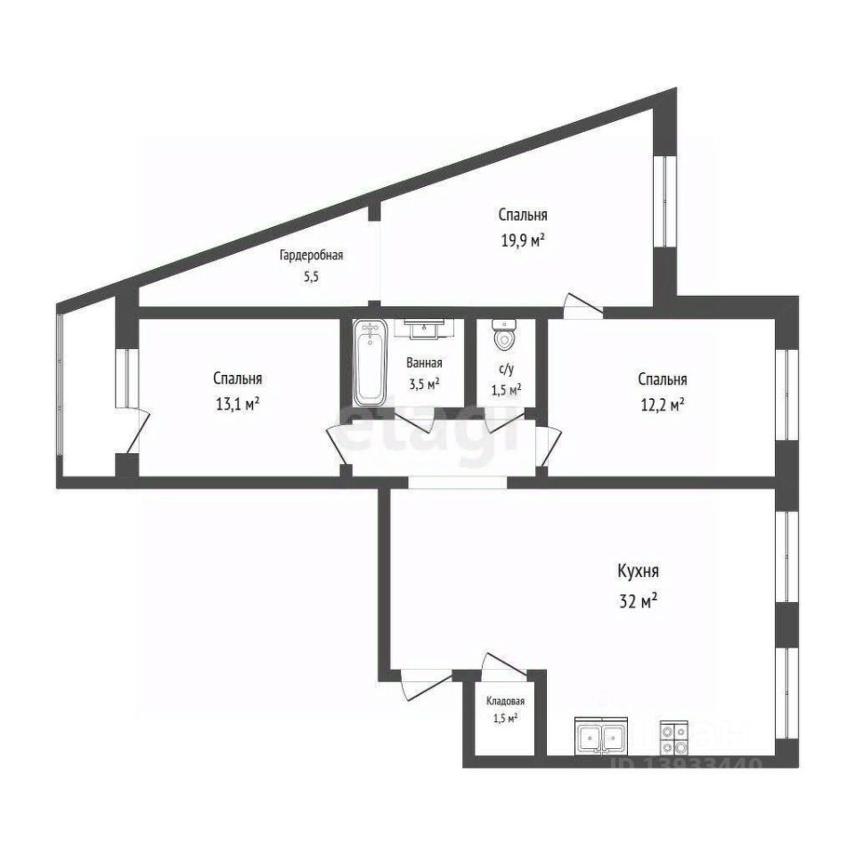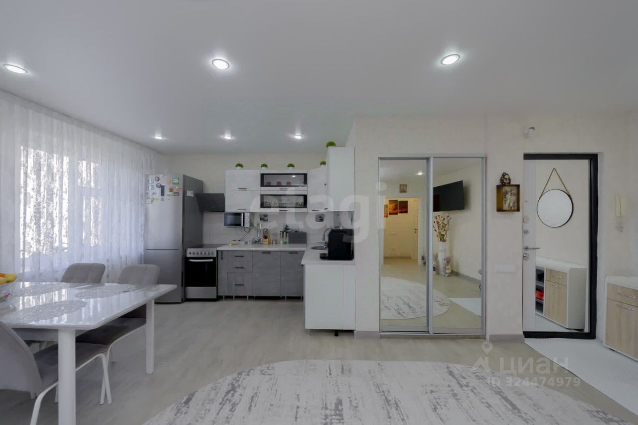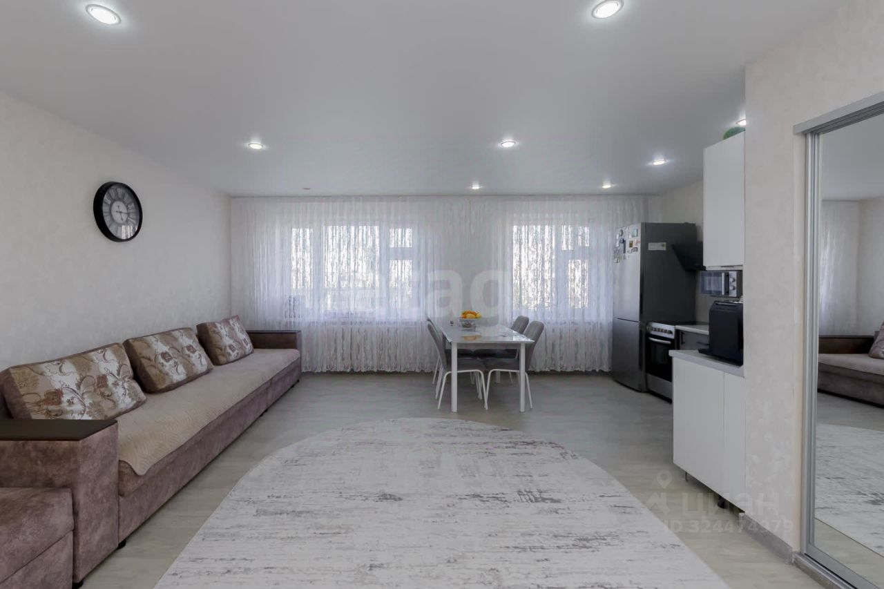 Площадь квартиры составляет 92 м², она выполнена в современной планировке с изолированными комнатами. Просторная гостиная объединена с кухней, что создает удобное пространство для отдыха и приема гостей. Кухня оборудована функциональной мебелью и техникой, окна выходят на обе стороны света, обеспечивая естественное освещение без уличного шума. Спальня отделена от общего пространства, что гарантирует уединенность. Санузел раздельный, с качественной отделкой и современной сантехникой.