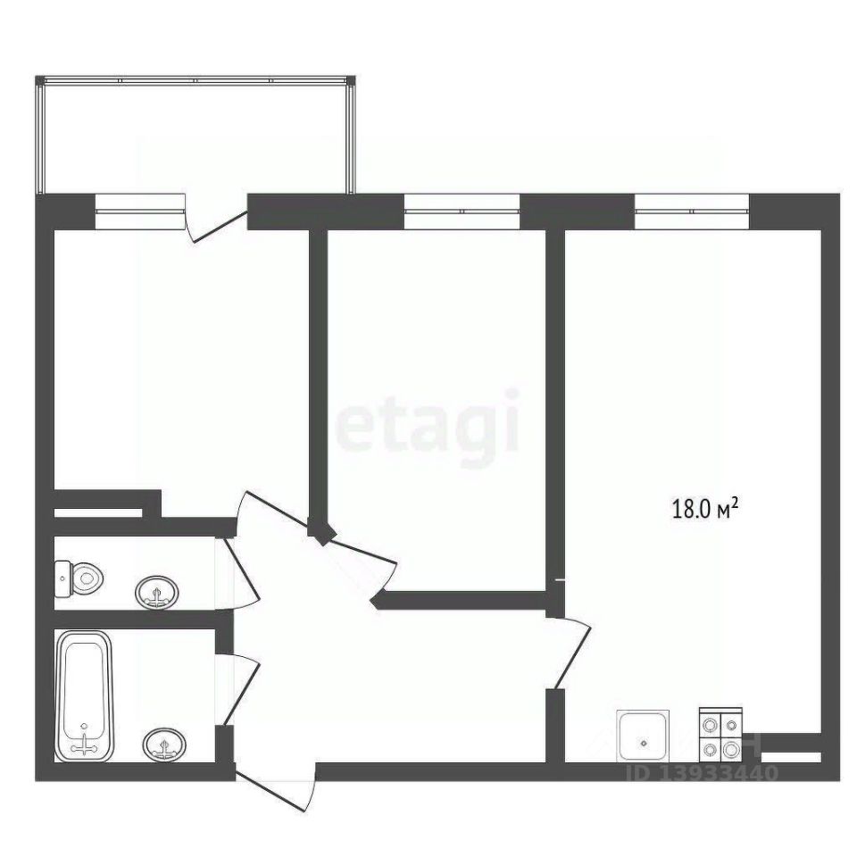 Квартира - евротрешка - 2 комнаты, большая кухня-гостиная, раздельный санузел, утепленный балкон.