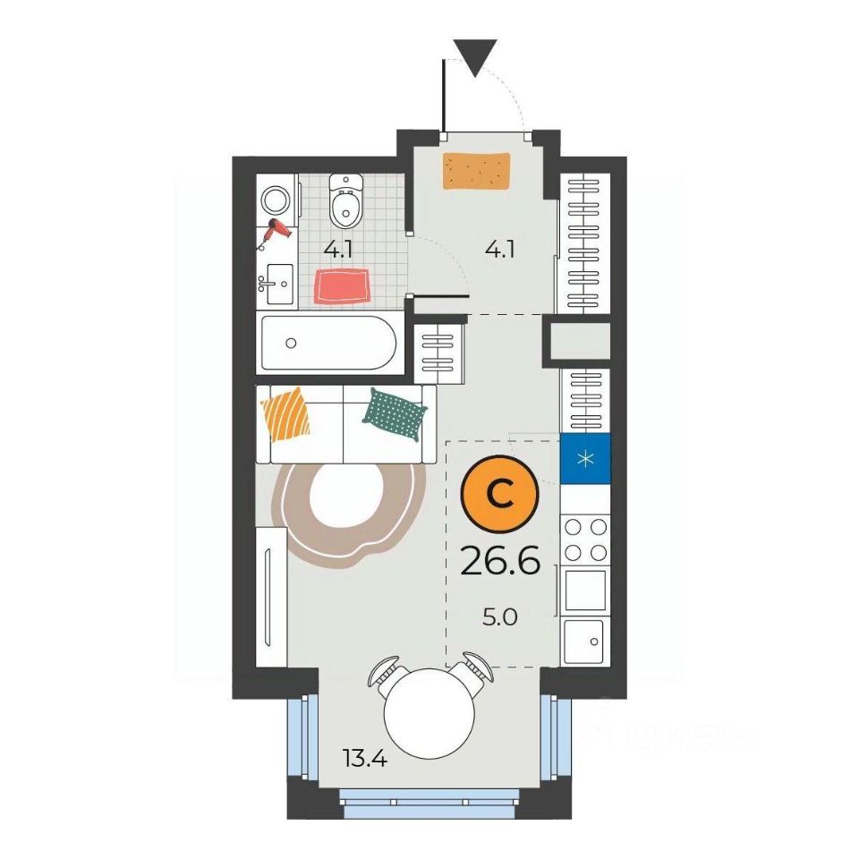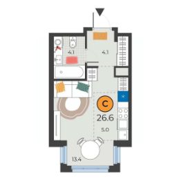 Общая площадь26,6 м²