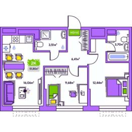 19-этажная архитектурная доминанта с эффектом паруса и камерная секция: французские балконы, сити-хаусы на 1-м этаже, 9 этажей в доме. Уступчатая структура формирует динамичный силуэт — новый акцент ул. Полевая. Металлические балконы создают градиент от тёмного к светлому, большие окна — панорамные виды на город.