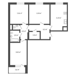 Особенность этого жилья — умный дом: датчики температуры и протечки воды, электрозадвижки на кранах, видеодомофон и мобильное управление освещением. Бесключевой доступ делает вход ещё проще и современнее!