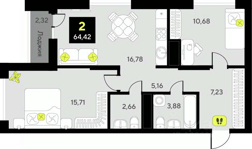 Общая площадь64,42 м²