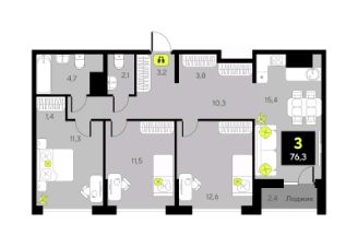 Просторная 3-комн. квартира с предчистовой отделкой в ЖК "Дивный квартал у озера" на 16 этаже. Общая площадь: 76.8 кв.м., жилая: 35.4 кв.м., площадь просторной кухни-столовой: 15.4 кв.м. Комнаты изолированные, все окна выходят на одну сторону. В квартире одна лоджия, один совмещенный и один раздельный санузел. Высота потолков 2.7 м.