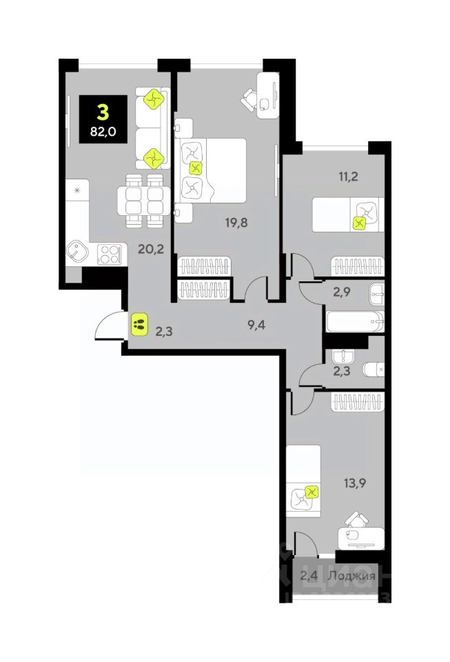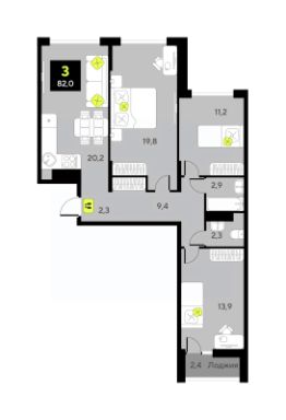 3-комн. квартира с предчистовой отделкой в ЖК "Дивный квартал у озера" на 16 этаже. Общая площадь: 82 кв.м., жилая: 45.1 кв.м., площадь просторной кухни-столовой: 20 кв.м. Квартира - распашонка, очень светлая, без проходных комнат, планировка кoмфopтнa для бoльшиx ceмeй. В квартире один балкон, один раздельный санузел. Высота потолков 2.7 м.