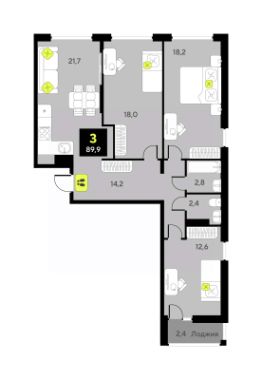 3-комн. квартира от застройщика с предчистовой отделкой в ЖК "Дивный квартал у озера" на 3 этаже. Общая площадь: 89.9 кв.м., жилая: 46.8 кв.м., площадь просторной кухни-столовой: 21.7 кв.м. Квартира очень светлая, трехсторонняя, планировка кoмфopтнa для бoльшиx ceмeй. В квартире один балкон, один раздельный санузел. Высота потолков 2.7 м.