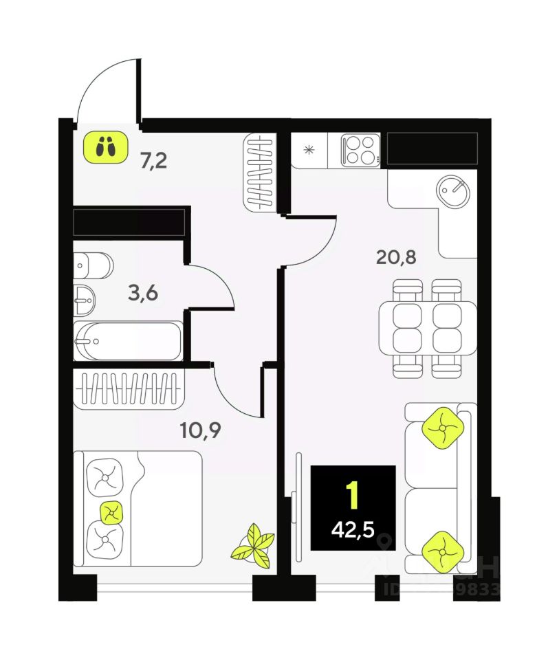 Продается однокомнатная квартира с предчистовой отделкой в ЖК "Дивный квартал у озера" на 13 этаже. Общая площадь: 42.2 кв.м., жилая: 10.9 кв.м., площадь просторной кухни-столовой: 20.8 кв.м. Все окна выходят на одну сторону. В квартире один совмещенный санузел. Высота потолков 2.7 м.